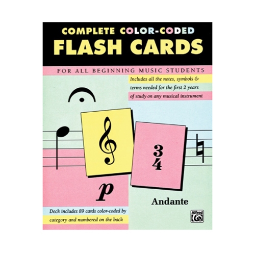 Includes all notes, symbols, and terms needed for the first two years of study on any musical instrument. Cards are color-coded by category and are numbered on the back.